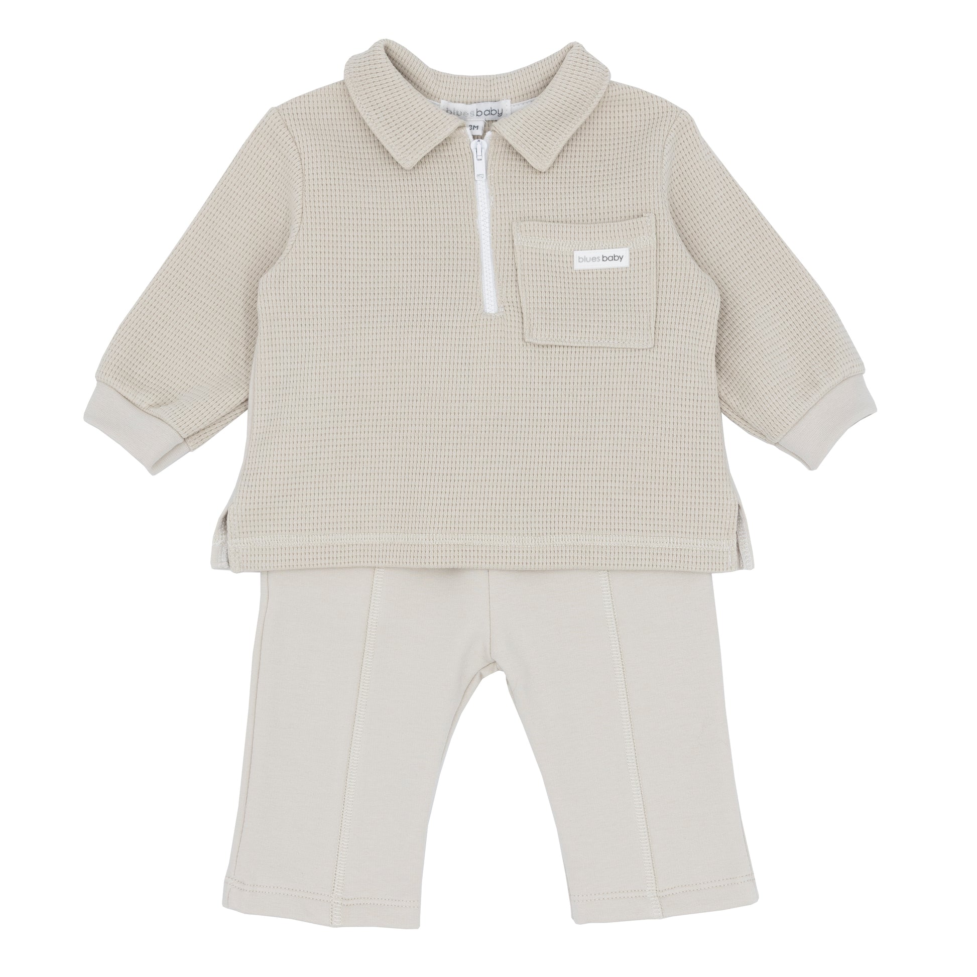 Blues Baby Boys Beige Zip Polo & Trouser Set BB2216